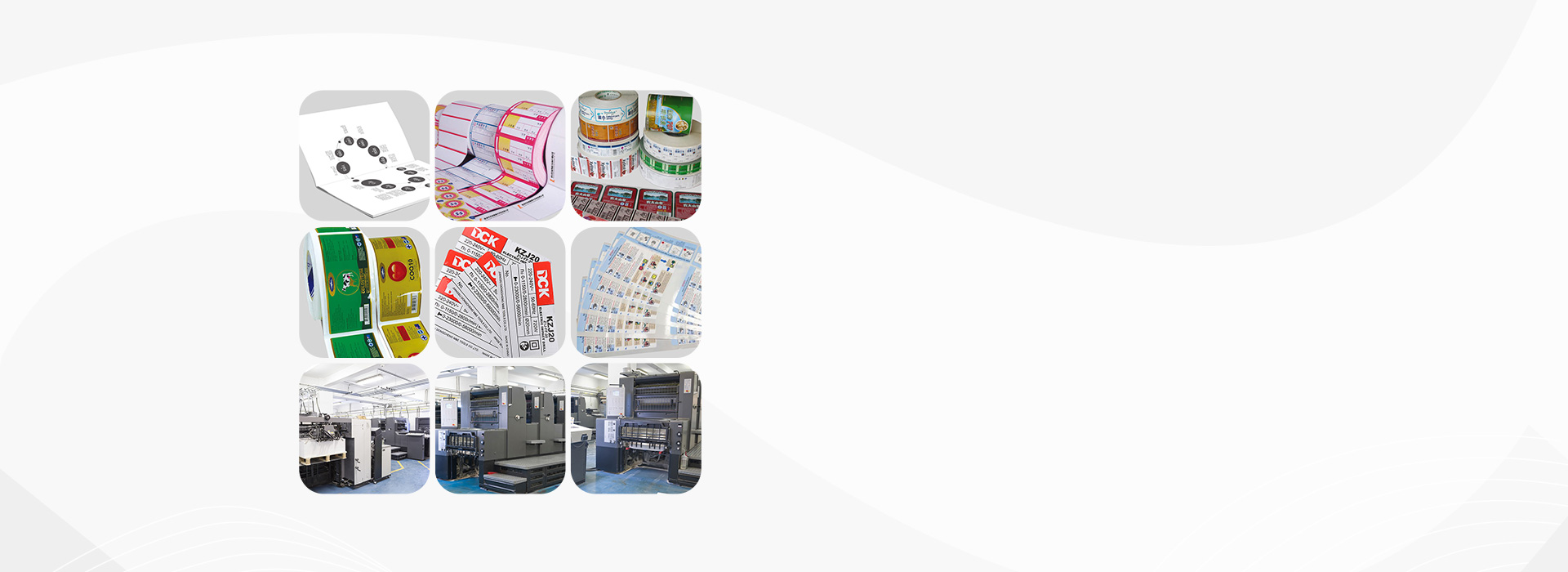 我们公司集设计、制版、印刷以及后加工为一体。引进了技术领先的先进设备,包括单色对开机,彩色不干胶商标机,以及过胶机、模切机、折页机、骑订龙、胶装机、UV磨UV磨光机、自动粘盒机、全自包盒机、自动裱坑机等全套后加工机器设备;为满足市场对于不干胶标签、彩盒包装、产品说明、企业画册、海报、商标、手提袋等系列商业印刷需求,服务传媒出版、母婴用品、电子电器、美容化妆、医药保健等行业,奠定了坚实的硬件基础。